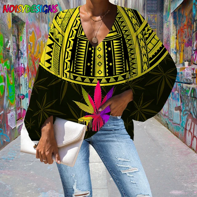 Noisydesigns Weed Leaf Design Ladies Blouse Casual Loose Long Sleeve Women Tops Blouse Polynesian Tribe Print Clothes Women Blouse Aliexpress